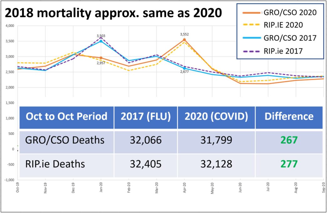 Approx. Mortality numbers for Ireland 2018 vs 2020 (note peak month April 2020 approx. matches deaths in peak month Jan 2018):
