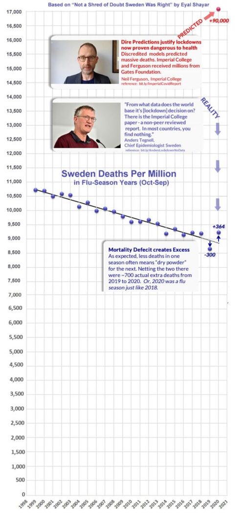 Sweden further data – below the definitive data, again illustrating approx. 0.03% of population is the excess death over expected. Note the soft 2019, which helps explain even that number (large loading of aged frail built up before 2020). Data from original post here: https://shahar-26393.medium.com/not-a-shred-of-doubt-sweden-was-right-32e6dab1f47a